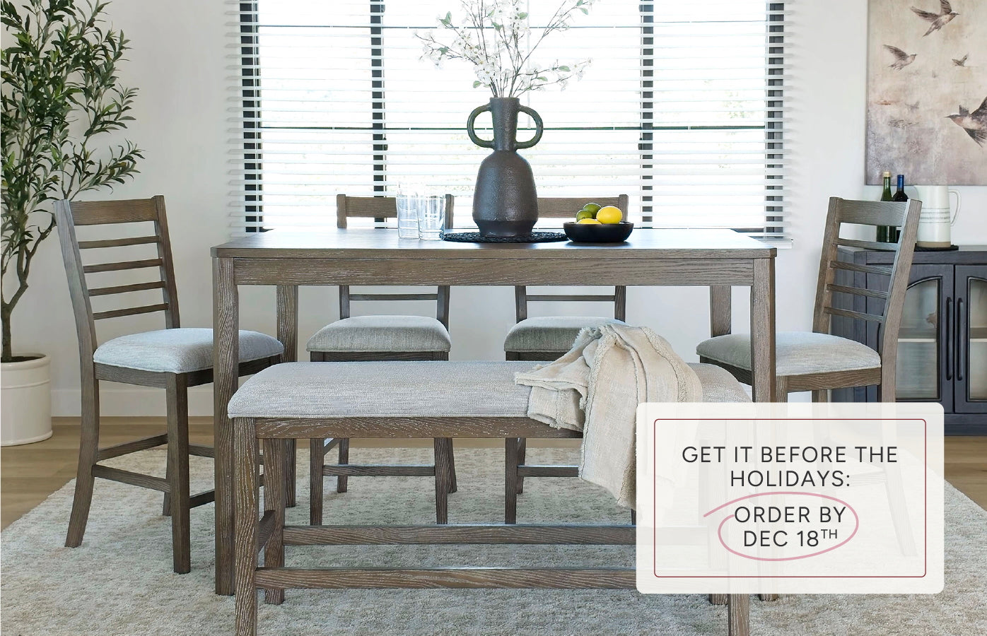 Refresh your space for holiday gatherings—order in-stock items by December 18 to get them in time.