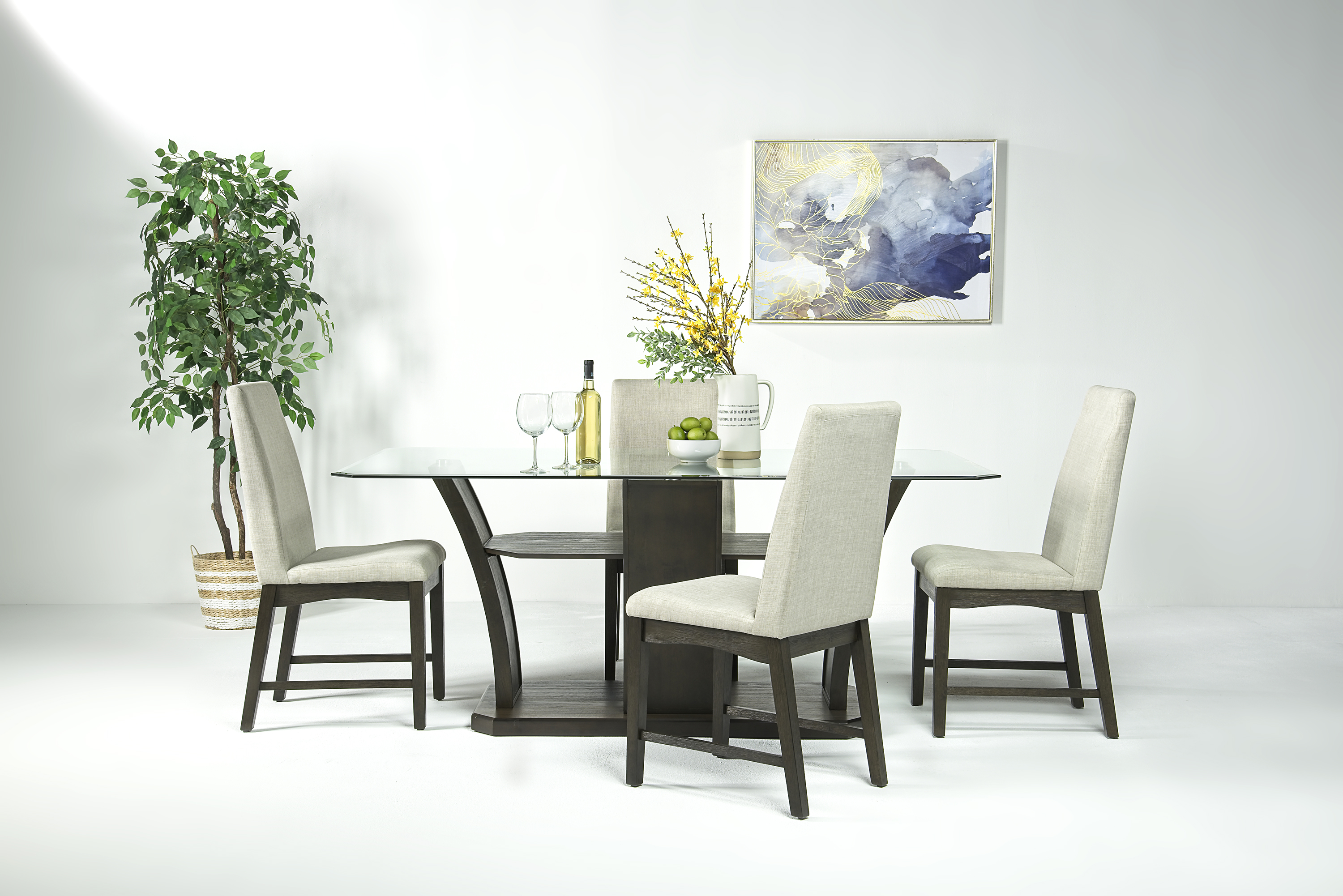 I was attracted to the Dapper Dining Set because of the curved lines of the base, the scale and versatility. I always love a glass table because it’s so easy to clean, which makes it super functional. It’s versatile enough to work with different styles, paint colors and wallpaper, which is a bonus for me!