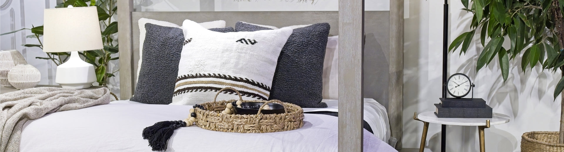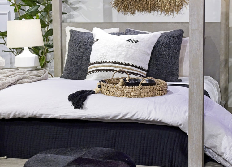 Accent! Rugs, pillows and mirrors add pops of color, texture and interest to tie everything together. And don't forget the ulimate layer – super-soft linens topped with a luxurious duvet for the ultimate cocoon. Sweet dreams!