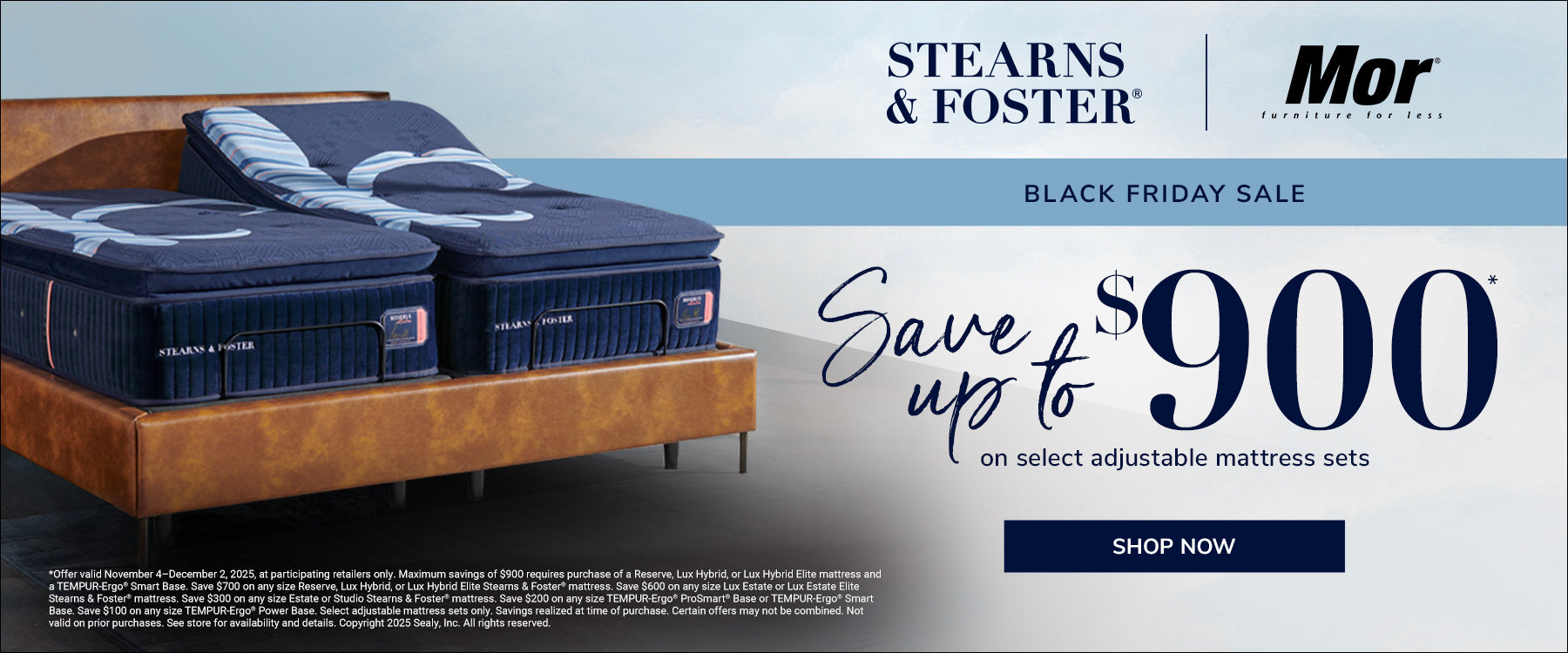 Enjoy a 90 day sleep trial on select Stearns & Fosters Mattresses**