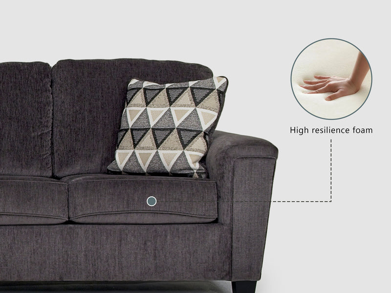 Soft chenille upholstered foam cushions provide cloud-like comfort, while 21-inch high tight back design ensures ideal body support. Zippered cushion design facilitates easy cleaning and maintenance, complemented by accent pillows, allowing you to maintain comfort during hours of relaxation whether for family gatherings or personal rest.