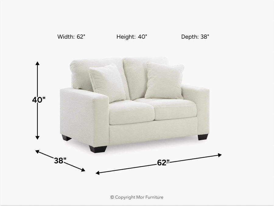 Bring home the Amesley Loveseat in Ivory and enjoy a cozy, stylish seating solution that’s perfect for smaller spaces or pairing with the matching sofa. This loveseat features a clean, tailored silhouette with plush foam cushions that offer everyday comfort and support. The ivory upholstery brings a light, airy feel to your room, making it ideal for brightening up neutral palettes or softening bold decor. Whether you're curling up with a loved one or enjoying a quiet moment alone, the Amesley Loveseat delivers timeless charm and lasting value for family living.