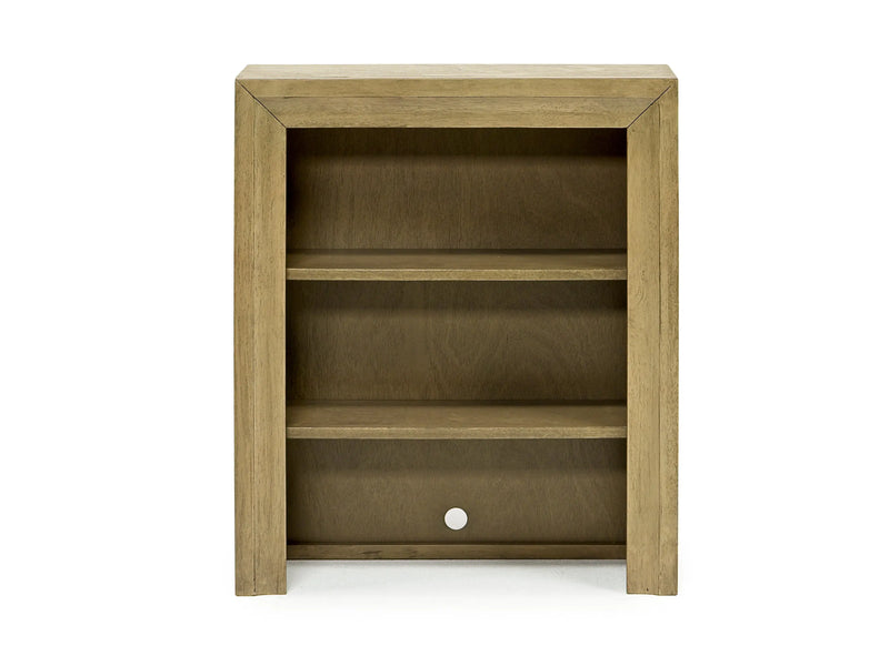 Two-drawer nightstand plus overhead hutch provides multi-level organization for bedroom essentials.