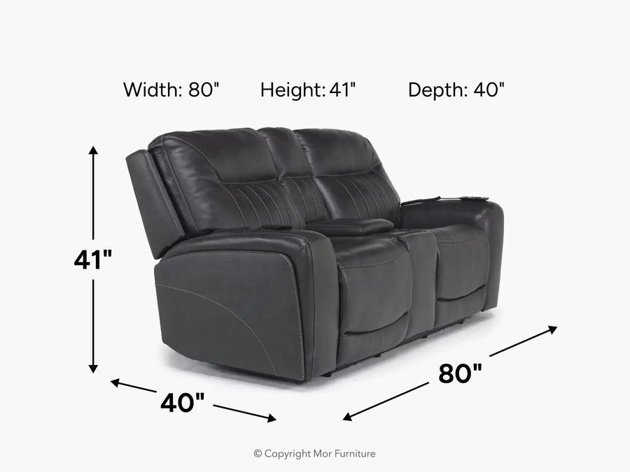 Banks 3 Power Console Loveseat In Chesapeake Charcoal Leather