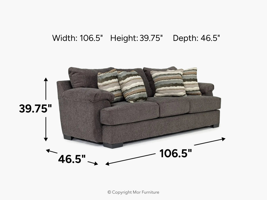 The generously-sized Bermuda Sofa in Victory II was made for comfort! Made with comfortable foam seat cushions and three included throw pillows that you can position for optimum comfort; this sofa is so comfortable you’ll want to stay here all day. The soft and strong chenille fabric finish is durable enough to stand up to daily use. Grab a good book and get comfortable! This sofa is going to be the most popular seat in your house.