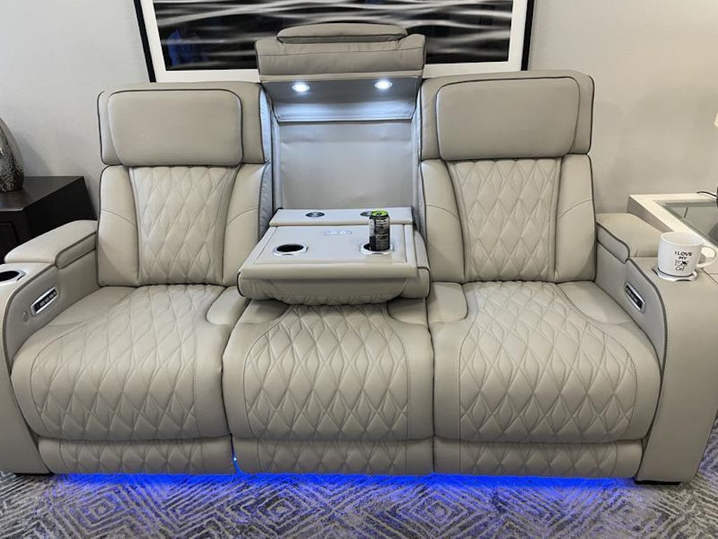 Experience cinema-quality comfort with dual power reclining that allows independent adjustment of both headrest and footrest positions. The smooth electric controls provide effortless transition from upright seating to full recline, while the theater-style design with built-in amenities creates the ultimate home entertainment experience.