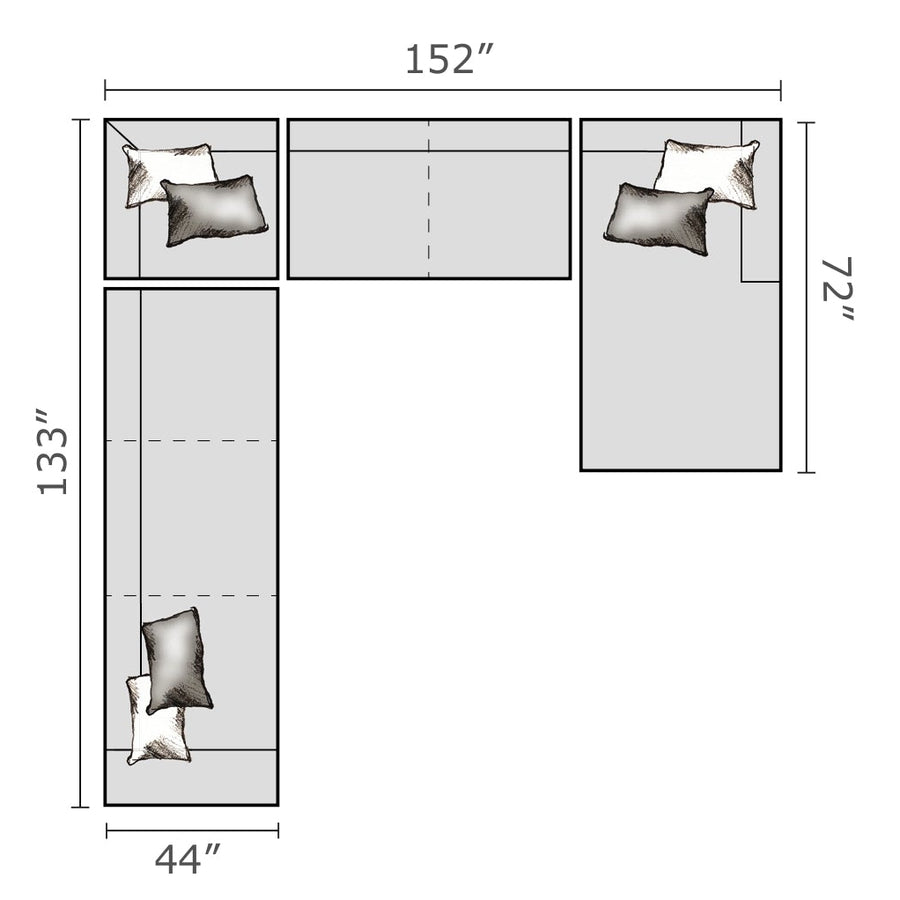 Loveseat, wedge, sofa, and chaise create flexible layout for any space.