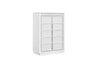 • Bright white lacquer finish with textured PVC drawer fronts