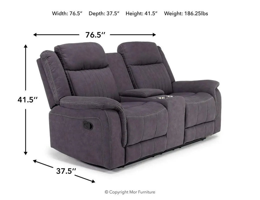 Central console features storage compartment and 2 cup holders for practical convenience.