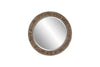 Strips of darkened weathered pine with a distressed natural brown finish give the Katet Distressed Accent Mirror in Brown an aged look that works in many home environments, from your mountain retreat to your house by the sea. Featuring a 1” bevel, this stunning 34” round framed mirror will look great in your bathroom, bedroom, or any room in your home.