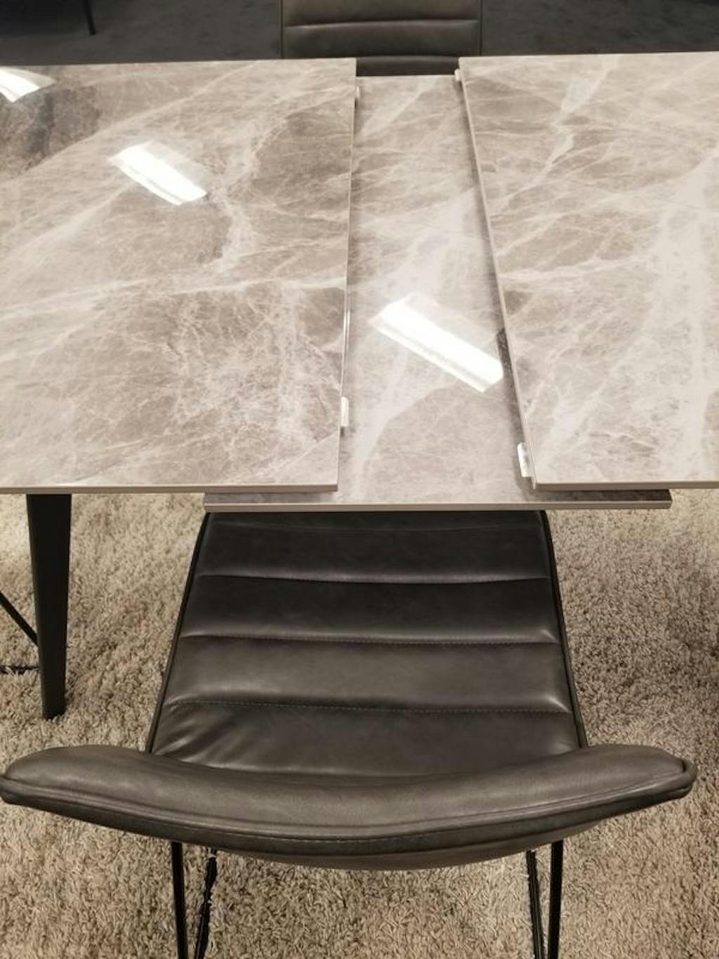 This elegant Lucia Dining Table & 4 Chairs in Cappuccino set is the perfect choice for your modern dining space. The sleek design of the table features a stunning base and top. Crafted with a metal frame construction and tapered legs in black, this set exudes durability and contemporary charm. The accompanying side chairs in mocha leather offer a seamless transition from the table, with upholstered seat backs for comfort and a touch of luxury.
