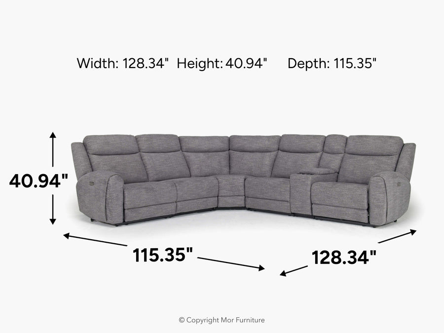 Mia 6 Piece 2 Power Sectional W/ 2 Power Armless Recliner In Gray