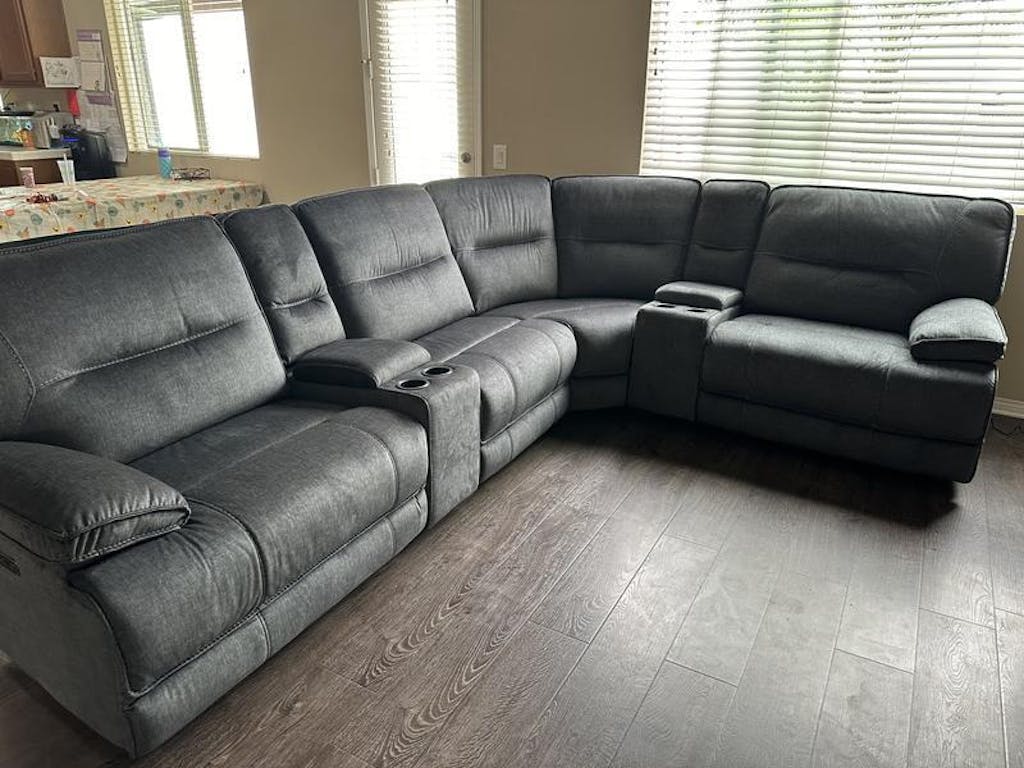We purchased this sectional about a year ago. Pretty cheap. There are tears along back side of cushion where head rests. I could understand if people were sitting on back of couch but no one has. We do lot have small children. Worst part is lower back bar protrudes when in reclined position. Even in a slight reclined position. I’ve had to buy pillow to protect lower back. Not satisfied with purchase.