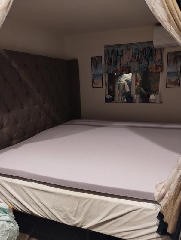 I love my new lavender topper. It's very soft and smells good every time I get into bed. I was worried about it shifting because it does not have any straps but I have not had any problems. It comes compressed in a box so it's easy to transport. I let it expand for 2 days and let it sit out an extra two days to let the initial smell dissipate. I couldn't be happier.