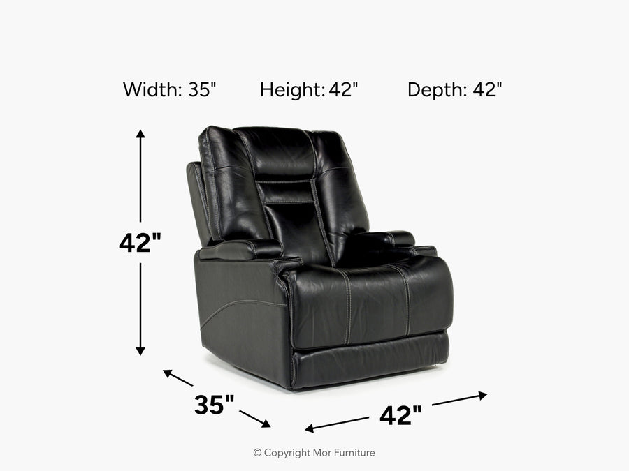 The perfect marriage of luxury and technology, the STT 3 Power Recliner w/ Wireless Charger in Onyx Leather transports you to your own relaxation paradise. Forget the hassles of the day and the distractions and just kick back for the perfect nap in this recliner’s ”layflat” mechanism. Style-rich and comfort-centric, this power-control chair lets you easily find the perfect headrest, extended footrest and lumbar support positions. It also meets today’s technological demands with convenient bluetooth capability, a wireless phone charger and a USB port, and its luxurious gunmetal leather adds sophistication to any living space.