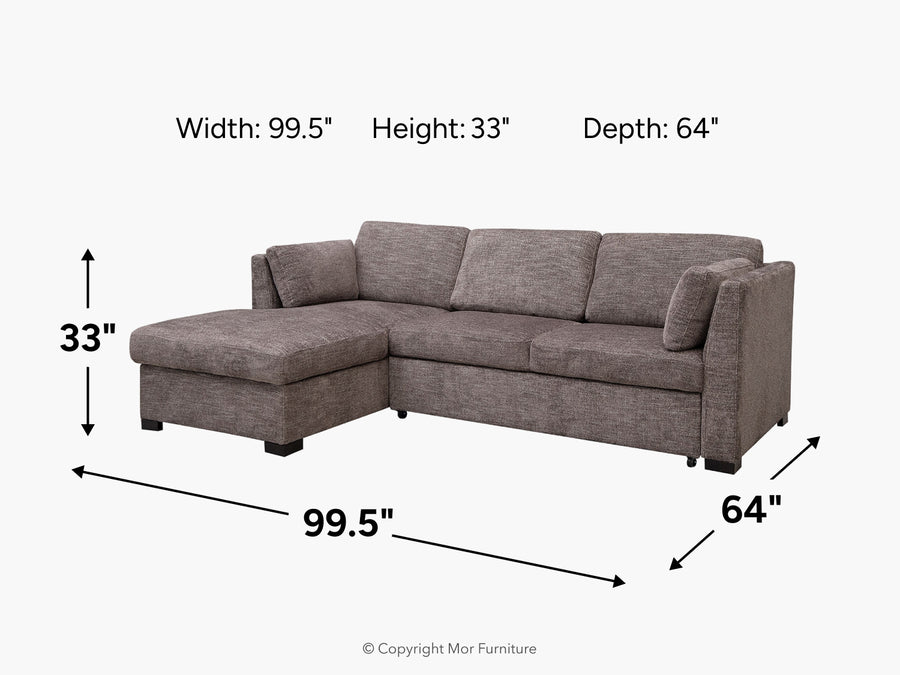 Vivian Full Pullout Sofa Chaise In Gray Fabric, Left Facing