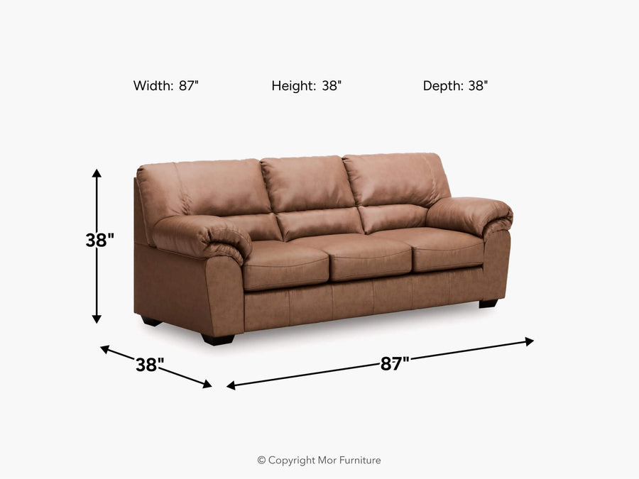 Beautiful sofa set at a great price. The caramel color looks darker in my home but I'm sure it's due to the lighting. It is very firm but comfortable. I'm sure over time it will soften. I love the padded arms. It is definitely nap ready. I like the faux leather surface because I can simply wipe messes with a leather cleaner. I would highly recommend this sofa!!