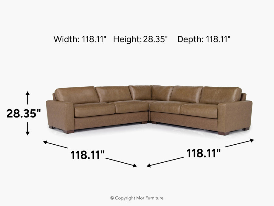 York 3 Piece Sectional In Chestnut Leather
